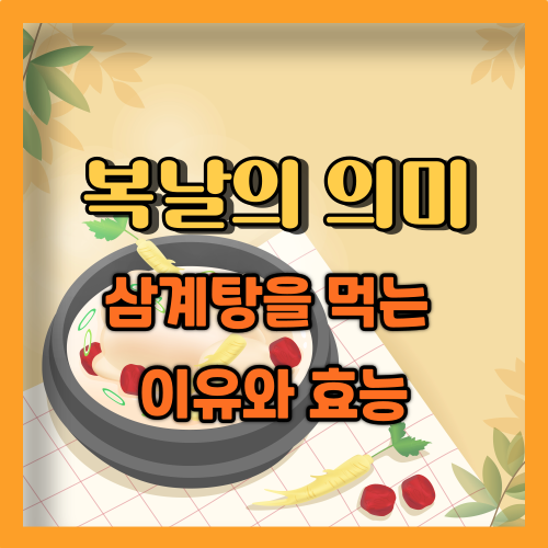 복날에 삼계탕을 찾는 것은 단순한 전통을 넘어 현대인에게도 시기적으로 보양식이 필요한 시기에 적절히 영양 보충을 통해 건강을 지키는 중요한 수단이기도 합니다. 복날에 삼계탕을 먹는 이유와 그 의미를 이해하고, 이를 통해 건강을 챙겨 활기찬 여름을 날 수 있기 바랍니다.